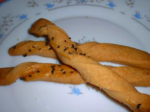 6. 輕輕扭轉長條麵皮,放入200度的烤箱中烤15分,即可。
