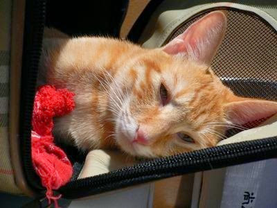 結果,現在卻會自己乖乖的窩進外出籠裡-----睡覺!!!
