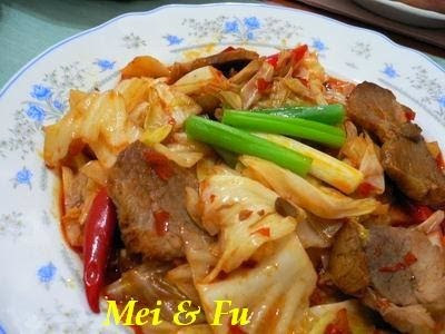 豬肉,高麗菜,大蒜,辣椒,辣豆瓣,辣椒醬跟醬油..