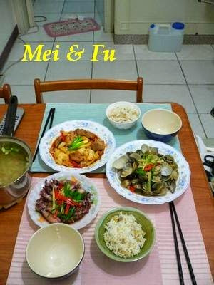 就決定了今天的菜色: 豆瓣豬肉片,清蒸小捲,炒蛤蜊跟蔬菜豬肉湯...