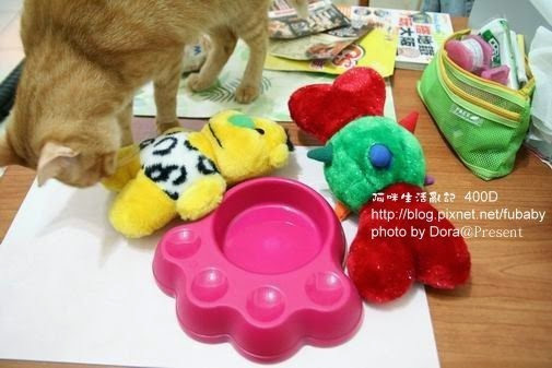 阿咪娘還拿了小玩具跟一個飼料盆,還有項圈給福福多多...