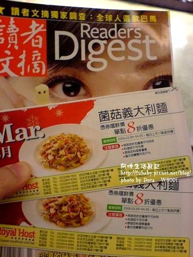 店員送了我們一本讀者文摘跟兩張優惠券...