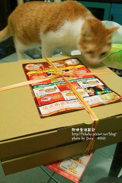 我才把pizza放上桌,笨多就迫不期待的想要弄開紙箱... ="=