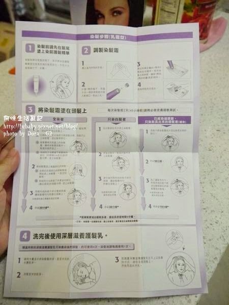 裡頭把該注意的事項、染髮內容物跟染髮的步驟都說明得很清楚。