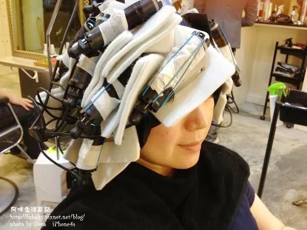 拆掉加熱器後,才會在上了髮捲的頭髮上加上藥劑,最後就完成囉~~