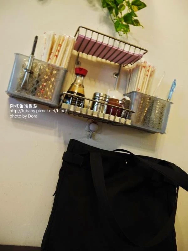 醬料跟餐具等都掛在牆上,真不錯、很會利用空間!! XD