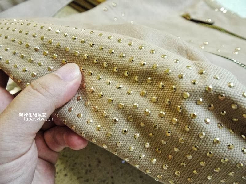 側邊是帆布材質,上頭金色的是塑膠小裝飾,黏得還蠻牢的。