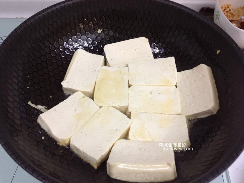 我的鍋是不沾鍋,所以煎起豆腐比較不那麼麻煩,豆腐看起來煎得蠻不錯的。
