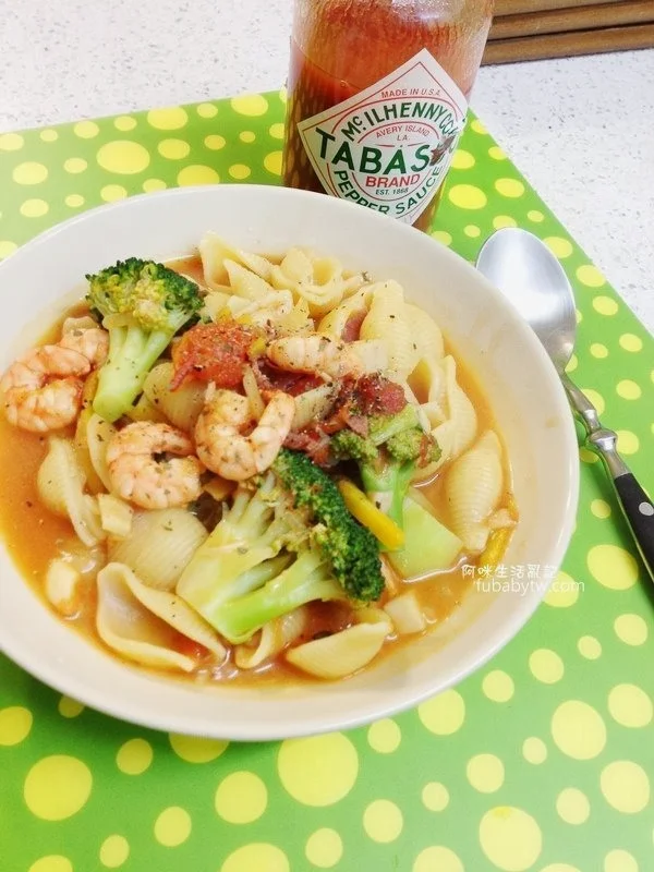 餐點:蕃茄蝦仁雞肉貝殼麵