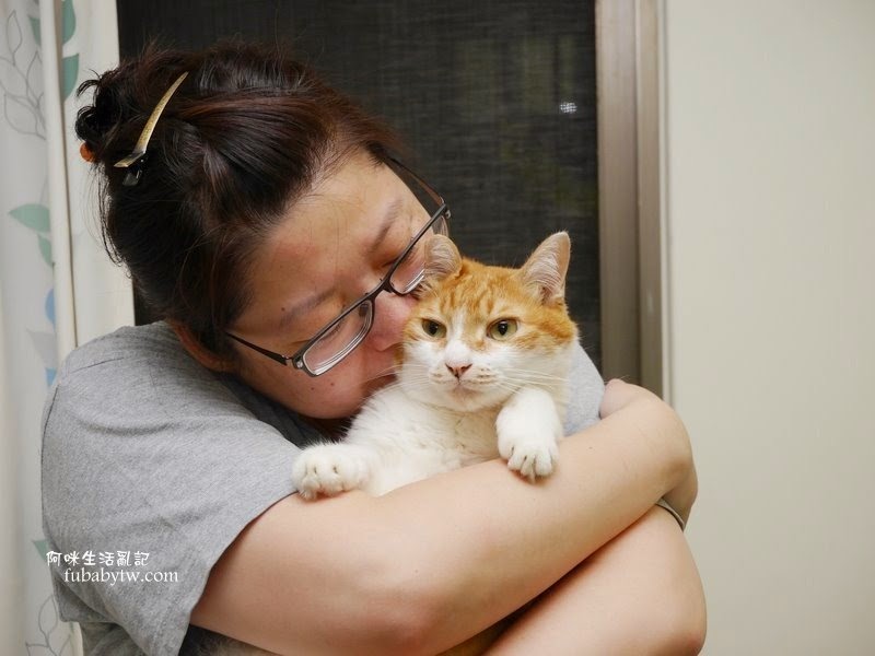 被擠到臉變形都還是乖乖讓我抱著,不過一放手、就一溜煙的跑掉啦!! XD