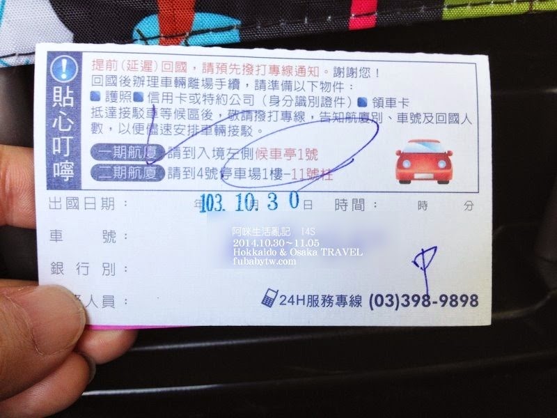 辦完手續後櫃台人員會給一張領車卡,當我們回到台灣後就可以打電話給嘟嘟房,請他們先把車子給預備好,